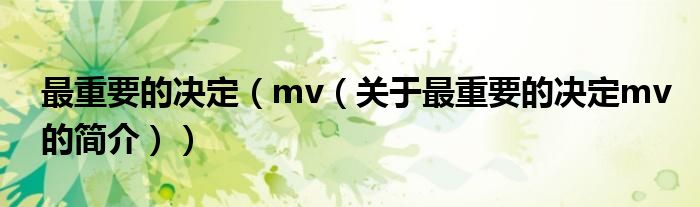 本文關于最重要的決定 mv的簡介就講解完畢,希望對大家有所幫助。