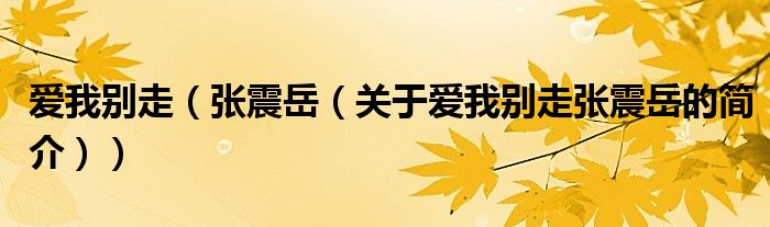 本文關于愛我別走 張震岳的簡介就講解完畢,希望對大家有所幫助。