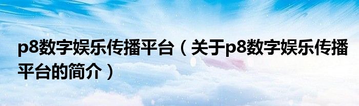 本文關于p8數字娛樂傳播平臺的簡介就講解完畢,希望對大家有所幫助。
