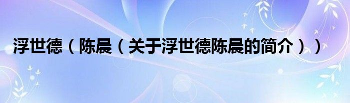 本文關(guān)于浮世德 陳晨的簡介就講解完畢,希望對大家有所幫助。