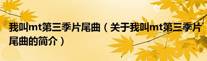 大家好,我叫mt第三季片尾曲,關于我叫mt第三季片尾曲的簡介很多人還不知道,現在讓我們一起來看看吧!