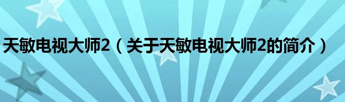 大家好,天敏電視大師2,關(guān)于天敏電視大師2的簡介很多人還不知道,現(xiàn)在讓我們一起來看看吧!