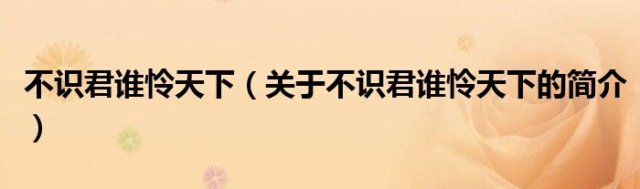 本文關于不識君誰憐天下的簡介就講解完畢,希望對大家有所幫助。