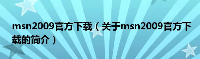本文關于msn2009官方下載的簡介就講解完畢,希望對大家有所幫助。