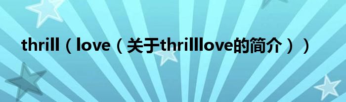 大家好,thrill love,關于thrill love的簡介很多人還不知道,現在讓我們一起來看看吧!