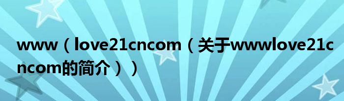 大家好,www love21cn com,關于www love21cn com的簡介很多人還不知道,現在讓我們一起來看看吧!