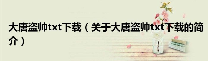 本文關于大唐盜帥txt下載的簡介就講解完畢,希望對大家有所幫助。