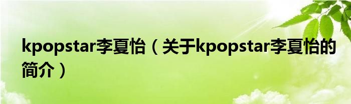 本文關于kpopstar李夏怡的簡介就講解完畢,希望對大家有所幫助。