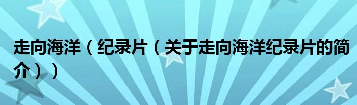 本文關(guān)于走向海洋 紀(jì)錄片的簡(jiǎn)介就講解完畢,希望對(duì)大家有所幫助。