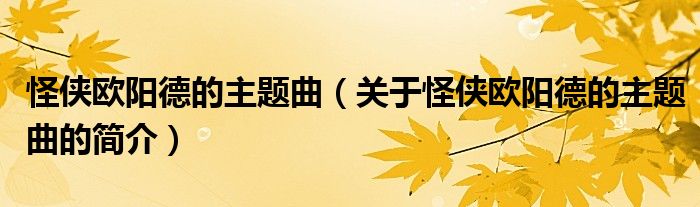 本文關(guān)于怪俠歐陽德的主題曲的簡介就講解完畢,希望對大家有所幫助。
