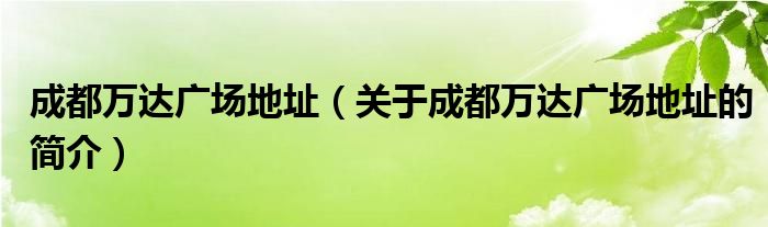 本文關于成都萬達廣場地址的簡介就講解完畢,希望對大家有所幫助。