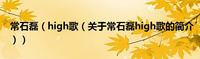本文關于常石磊 high歌的簡介就講解完畢,希望對大家有所幫助。
