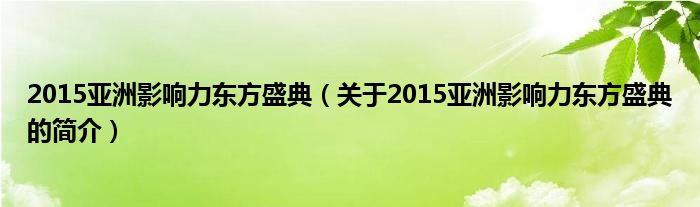 本文關于2015亞洲影響力東方盛典的簡介就講解完畢,希望對大家有所幫助。