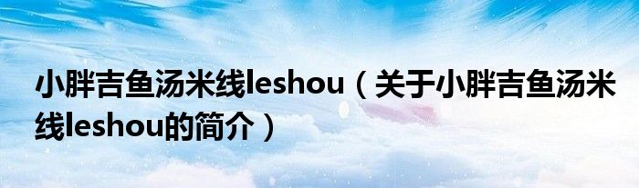 本文關于小胖吉魚湯米線leshou的簡介就講解完畢,希望對大家有所幫助。