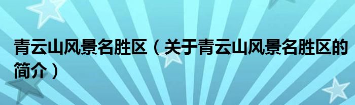 本文關于青云山風景名勝區的簡介就講解完畢,希望對大家有所幫助。