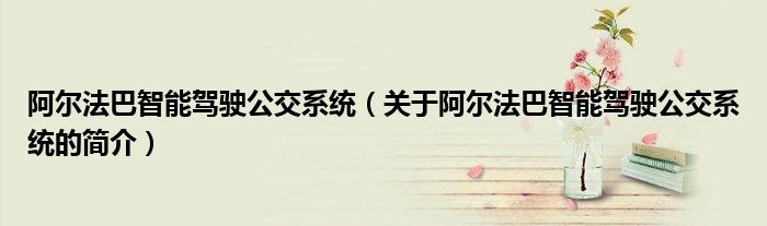 大家好,阿爾法巴智能駕駛公交系統(tǒng),關于阿爾法巴智能駕駛公交系統(tǒng)的簡介很多人還不知道,現(xiàn)在讓我們一起來看看吧!