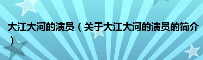 大家好,大江大河的演員,關于大江大河的演員的簡介很多人還不知道,現(xiàn)在讓我們一起來看看吧!