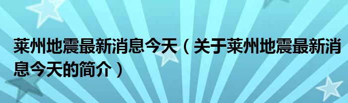 本文關(guān)于萊州地震最新消息今天的簡介就講解完畢,希望對大家有所幫助。