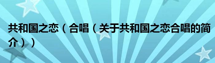 本文關(guān)于共和國(guó)之戀 合唱的簡(jiǎn)介就講解完畢,希望對(duì)大家有所幫助。
