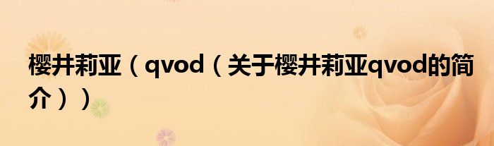 本文關(guān)于櫻井莉亞 qvod的簡(jiǎn)介就講解完畢,希望對(duì)大家有所幫助。