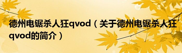 本文關于德州電鋸殺人狂qvod的簡介就講解完畢,希望對大家有所幫助。