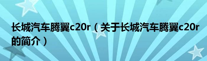 本文關于長城汽車騰翼c20r的簡介就講解完畢,希望對大家有所幫助。