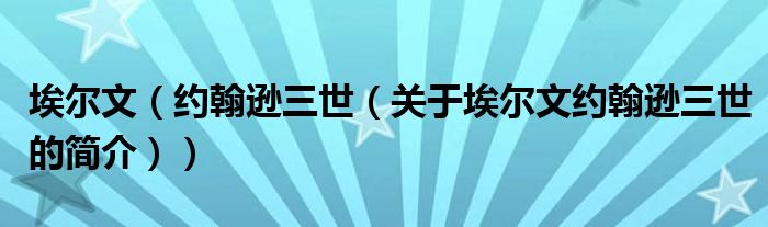本文關(guān)于埃爾文 約翰遜三世的簡(jiǎn)介就講解完畢,希望對(duì)大家有所幫助。