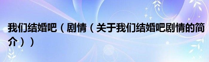 本文關于我們結婚吧 劇情的簡介就講解完畢,希望對大家有所幫助。