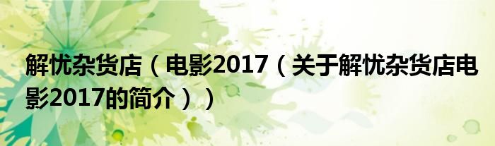 本文關(guān)于解憂雜貨店 電影 2017的簡介就講解完畢,希望對大家有所幫助。