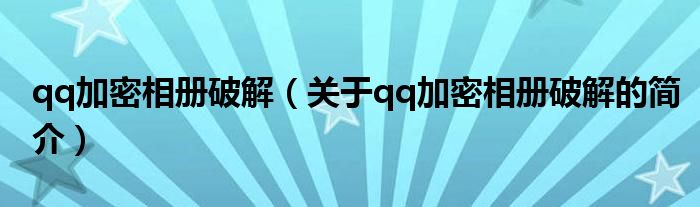 大家好,qq加密相冊(cè)破解,關(guān)于qq加密相冊(cè)破解的簡(jiǎn)介很多人還不知道,現(xiàn)在讓我們一起來(lái)看看吧!
