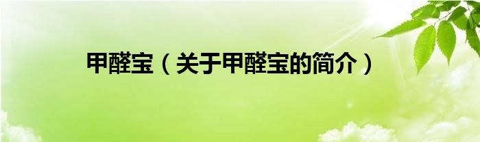 大家好,甲醛寶,關(guān)于甲醛寶的簡介很多人還不知道,現(xiàn)在讓我們一起來看看吧!
