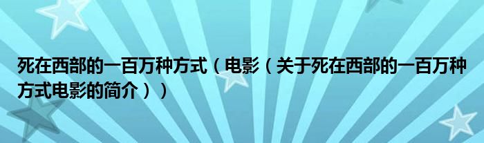 本文關于死在西部的一百萬種方式 電影的簡介就講解完畢,希望對大家有所幫助。