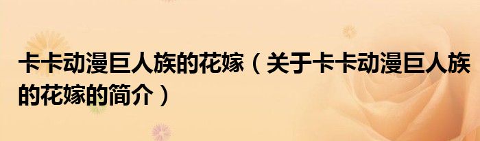 本文關于卡卡動漫巨人族的花嫁的簡介就講解完畢,希望對大家有所幫助。
