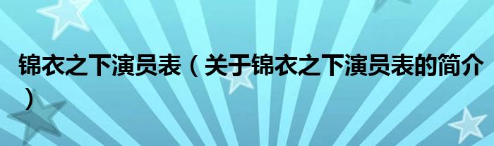本文關(guān)于錦衣之下演員表的簡介就講解完畢,希望對大家有所幫助。