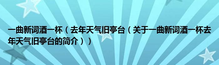 本文關于一曲新詞酒一杯 去年天氣舊亭臺的簡介就講解完畢,希望對大家有所幫助。