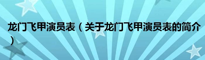 本文關于龍門飛甲演員表的簡介就講解完畢,希望對大家有所幫助。