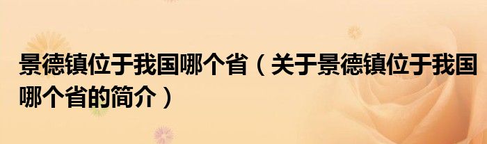 本文關于景德鎮位于我國哪個省的簡介就講解完畢,希望對大家有所幫助。