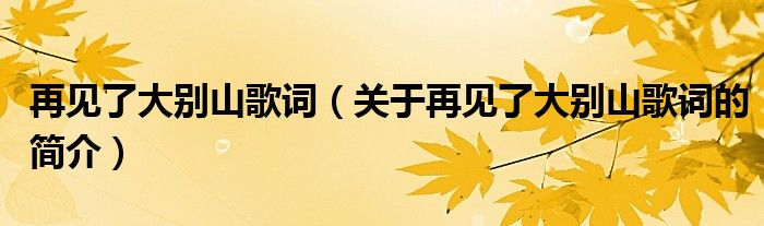 本文關(guān)于再見了大別山歌詞的簡(jiǎn)介就講解完畢,希望對(duì)大家有所幫助。