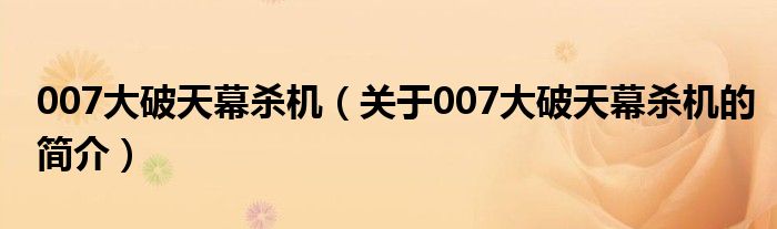 大家好,007大破天幕殺機,關于007大破天幕殺機的簡介很多人還不知道,現在讓我們一起來看看吧!