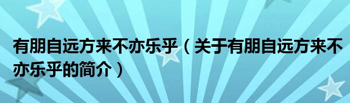 大家好,有朋自遠方來不亦樂乎,關于有朋自遠方來不亦樂乎的簡介很多人還不知道,現在讓我們一起來看看吧!