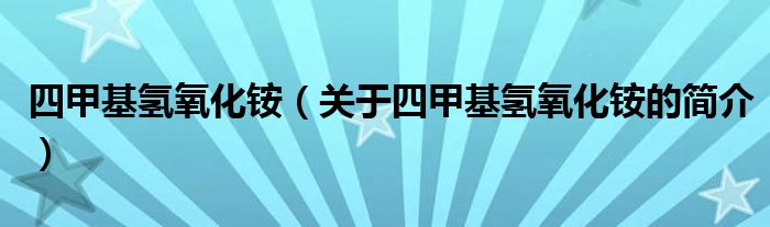 本文關(guān)于四甲基氫氧化銨的簡(jiǎn)介就講解完畢,希望對(duì)大家有所幫助。