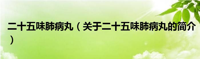 本文關于二十五味肺病丸的簡介就講解完畢,希望對大家有所幫助。