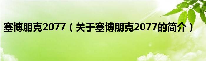 大家好,塞博朋克2077,關(guān)于塞博朋克2077的簡介很多人還不知道,現(xiàn)在讓我們一起來看看吧!