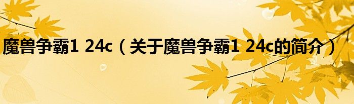 本文關(guān)于魔獸爭霸1 24c的簡介就講解完畢,希望對大家有所幫助。