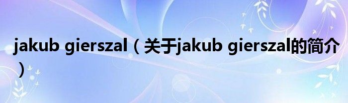 本文關于jakub gierszal的簡介就講解完畢,希望對大家有所幫助。