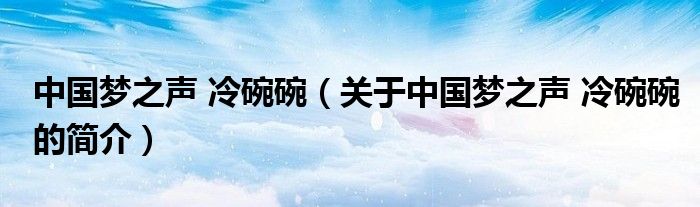 本文關(guān)于中國夢(mèng)之聲 冷碗碗的簡(jiǎn)介就講解完畢,希望對(duì)大家有所幫助。