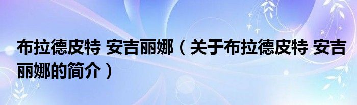 大家好,布拉德皮特 安吉麗娜,關于布拉德皮特 安吉麗娜的簡介很多人還不知道,現在讓我們一起來看看吧!