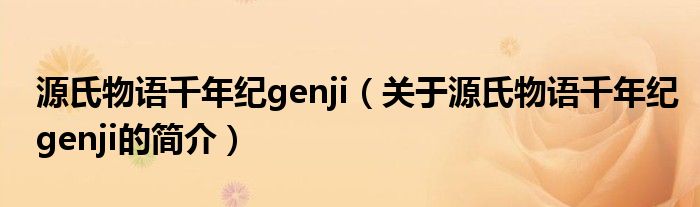 本文關于源氏物語千年紀genji的簡介就講解完畢,希望對大家有所幫助。