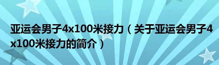 本文關于亞運會男子4x100米接力的簡介就講解完畢,希望對大家有所幫助。
