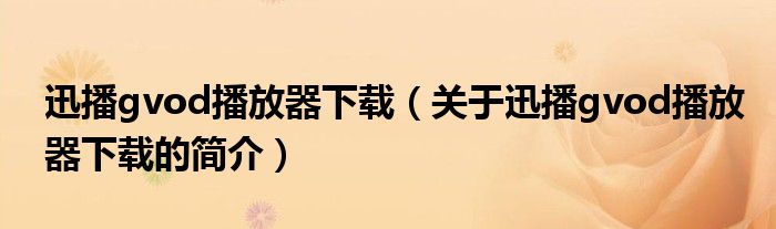 大家好,迅播gvod播放器下載,關于迅播gvod播放器下載的簡介很多人還不知道,現在讓我們一起來看看吧!